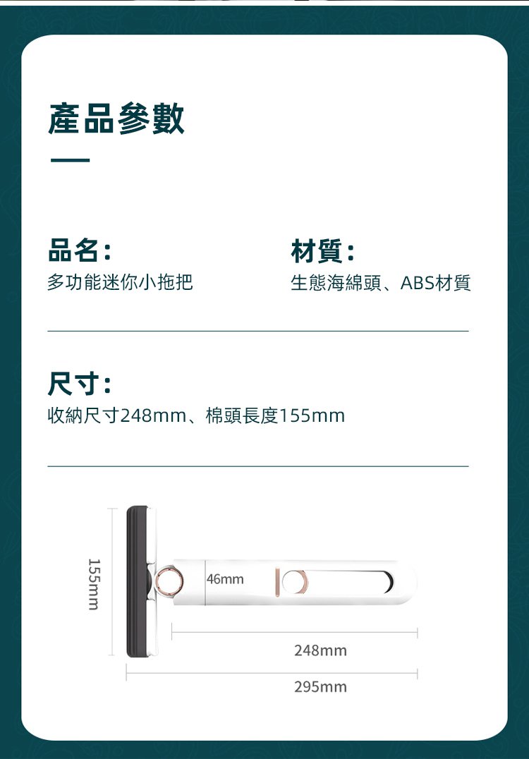 2分鐘前多功能小拖把 - 【厨房+餐廳+客廳+衛生間】四入組 NT$1190